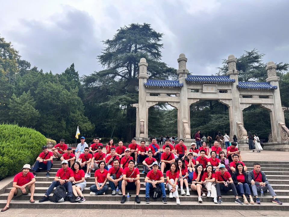 Ảnh: Tập thể cán bộ nhân viên Thành Nam chụp ảnh kỷ niệm trước Ngưu Thủ Sơn ở Nam Kinh, Trung Quốc